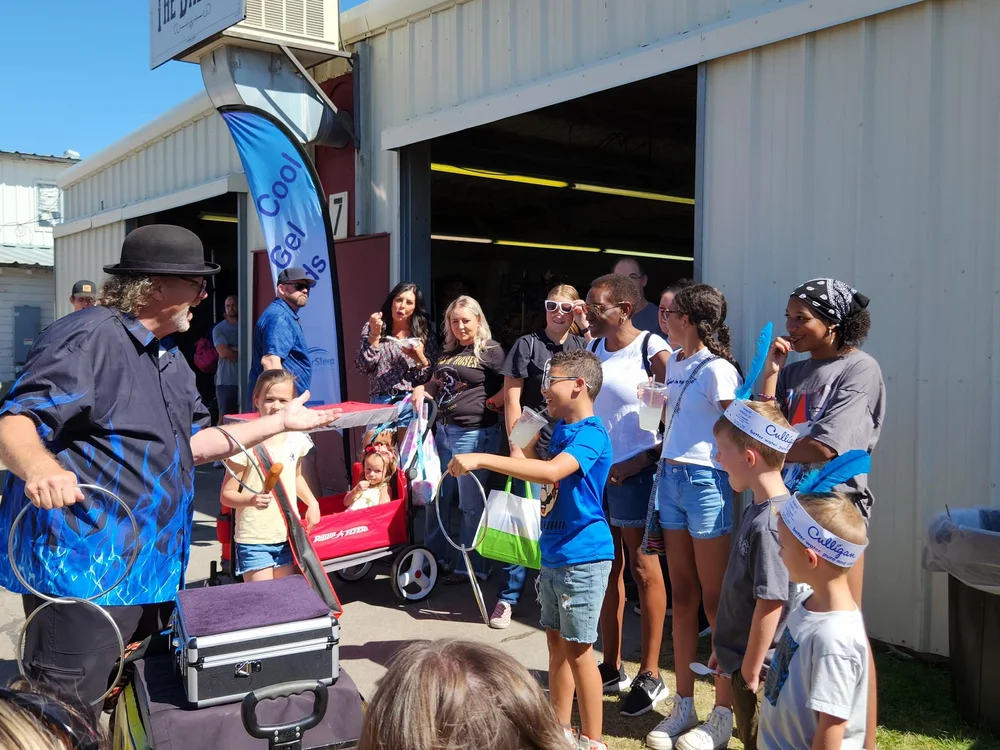 Witness expert strolling entertainer Marc Dobson as he masterfully plays 9.1 instruments at once, blending musical mastery with spontaneous improv comedy to create an unforgettable outdoor performance. His dynamic act captivates audiences with a perfect balance of precision, humor, and versatility, transforming any event into an immersive spectacle.